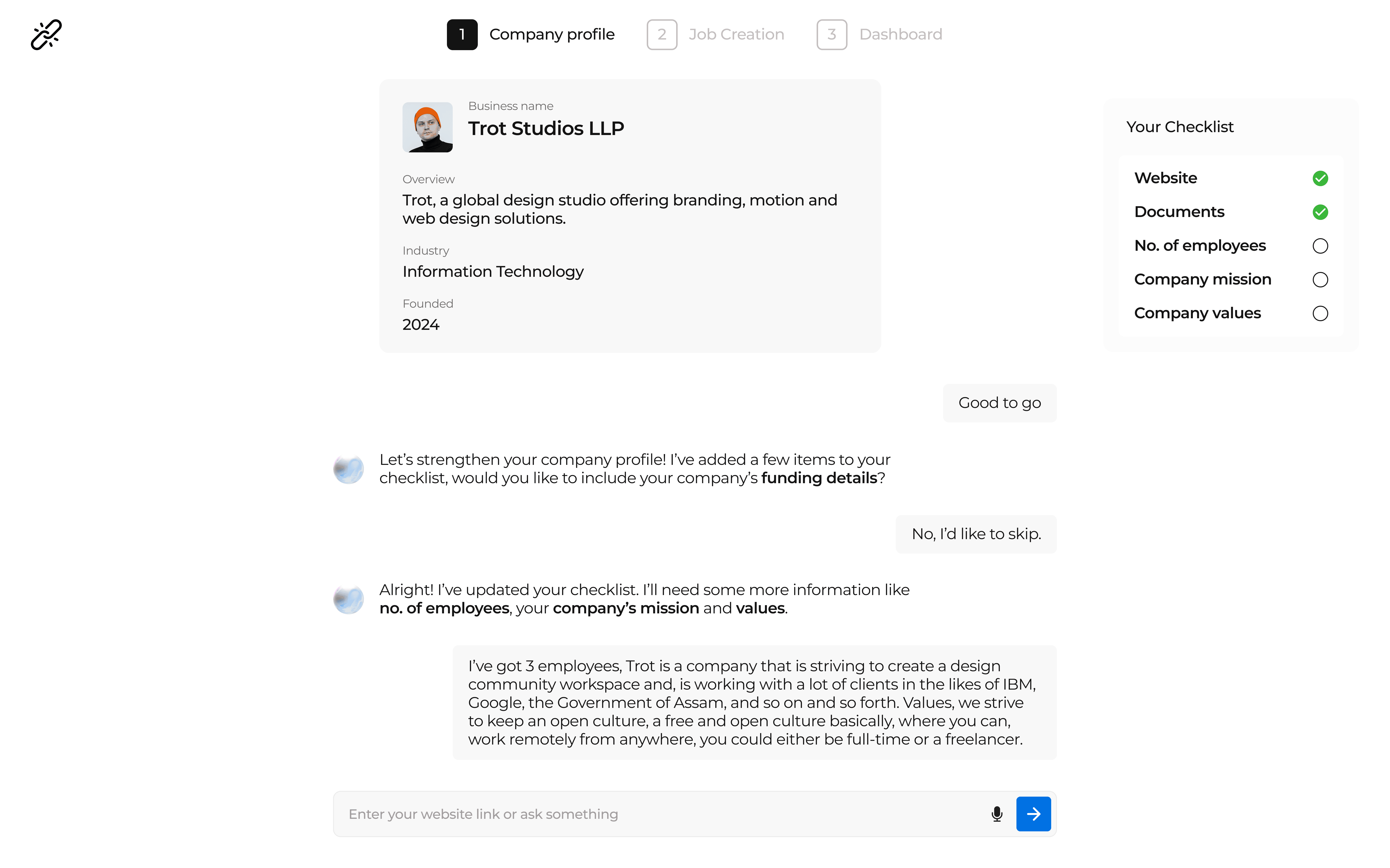 Recruiters hated filling long job posting forms. we learned to let the agent collect details piece-by-piece, while showing how each input improved candidate match quality.