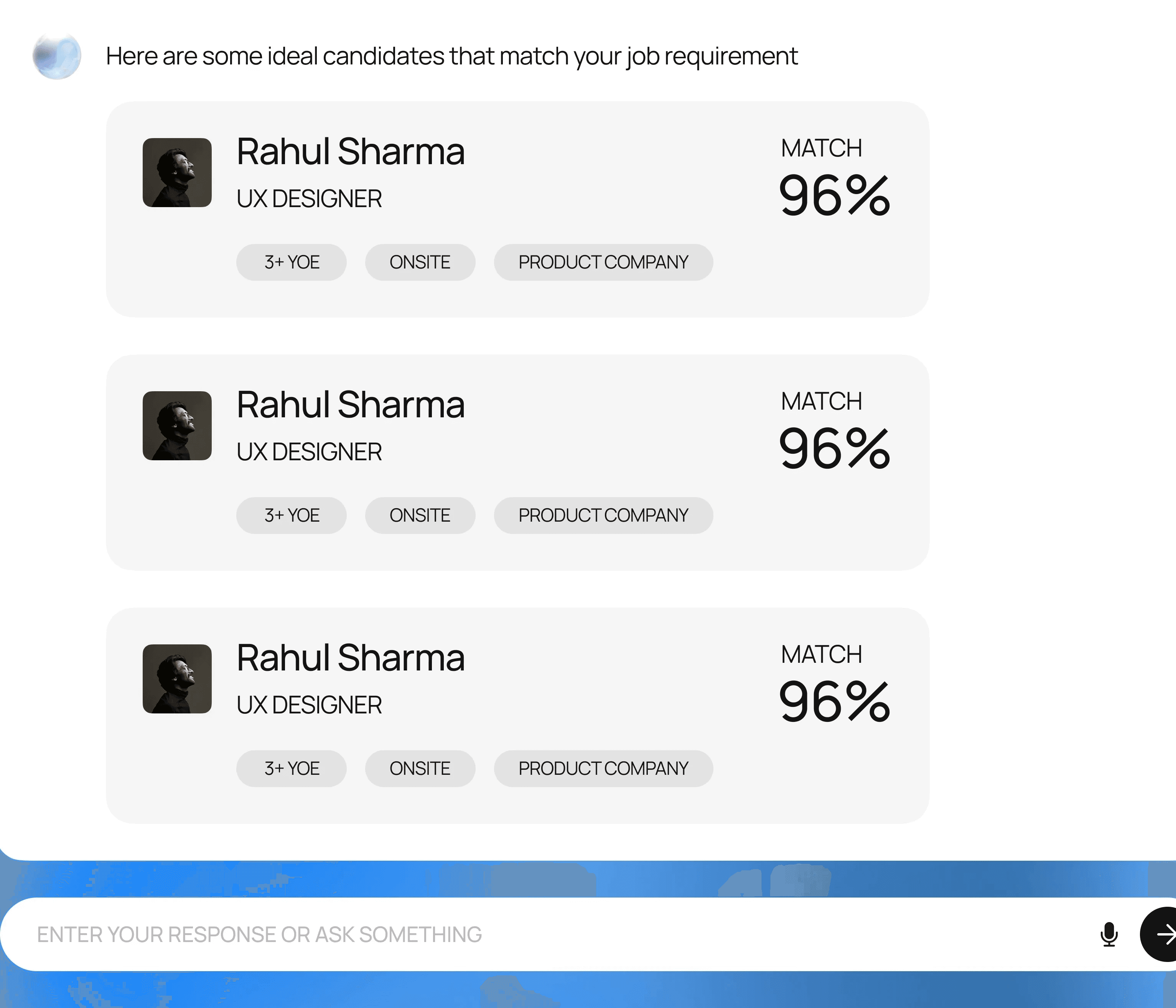 we introduced a match percentage with supporting reasons. the ai displays a score (e.g., 78% match) alongside key factors influencing that score (such as location fit, relevant experience). this would help recruiter and candidates quickly gauge suitability without looking here and there.